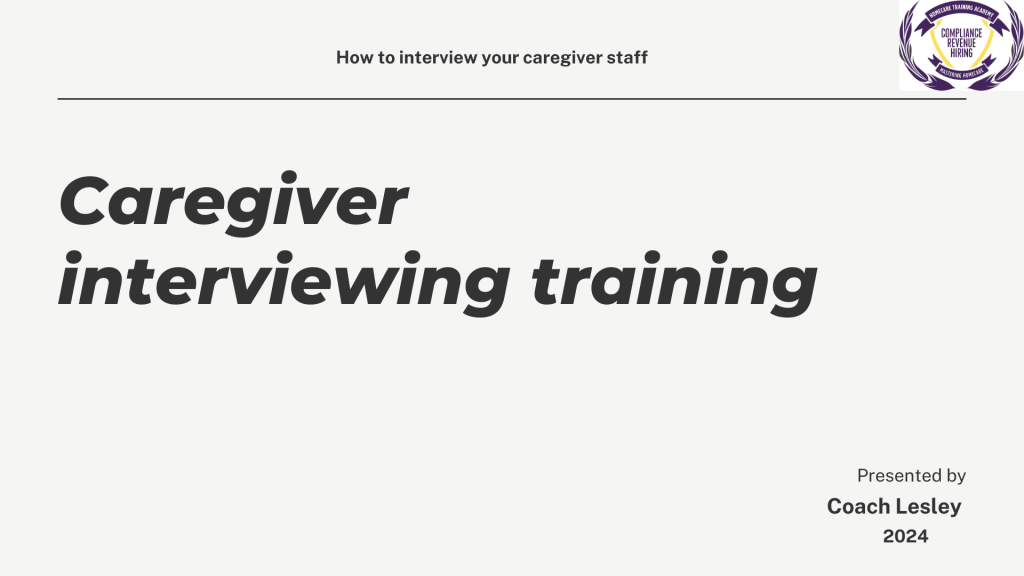 If you have any questions about regarding your home care business, you can email them to CoachLesley@homecaretrainingacademy.com.